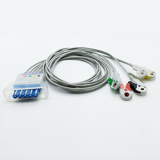 For PH Telemetry Monitor Holter Recorder ECG Cable 5 Leads Pinch IEC Standard